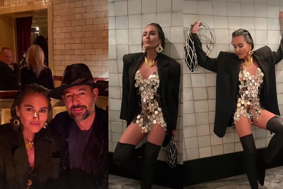 Yemek kombinini pullu elbiden, ve altın takılardan tercih eden Taşpınar'ın şık kombini dikkat çekti.